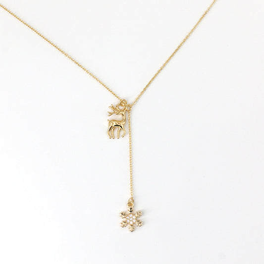 01 Fashion snowflake and deer necklace